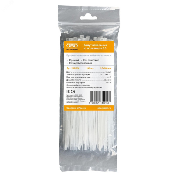 Кабельная стяжка белая 3,6x200 мм565 3.6x200 WS 2331836